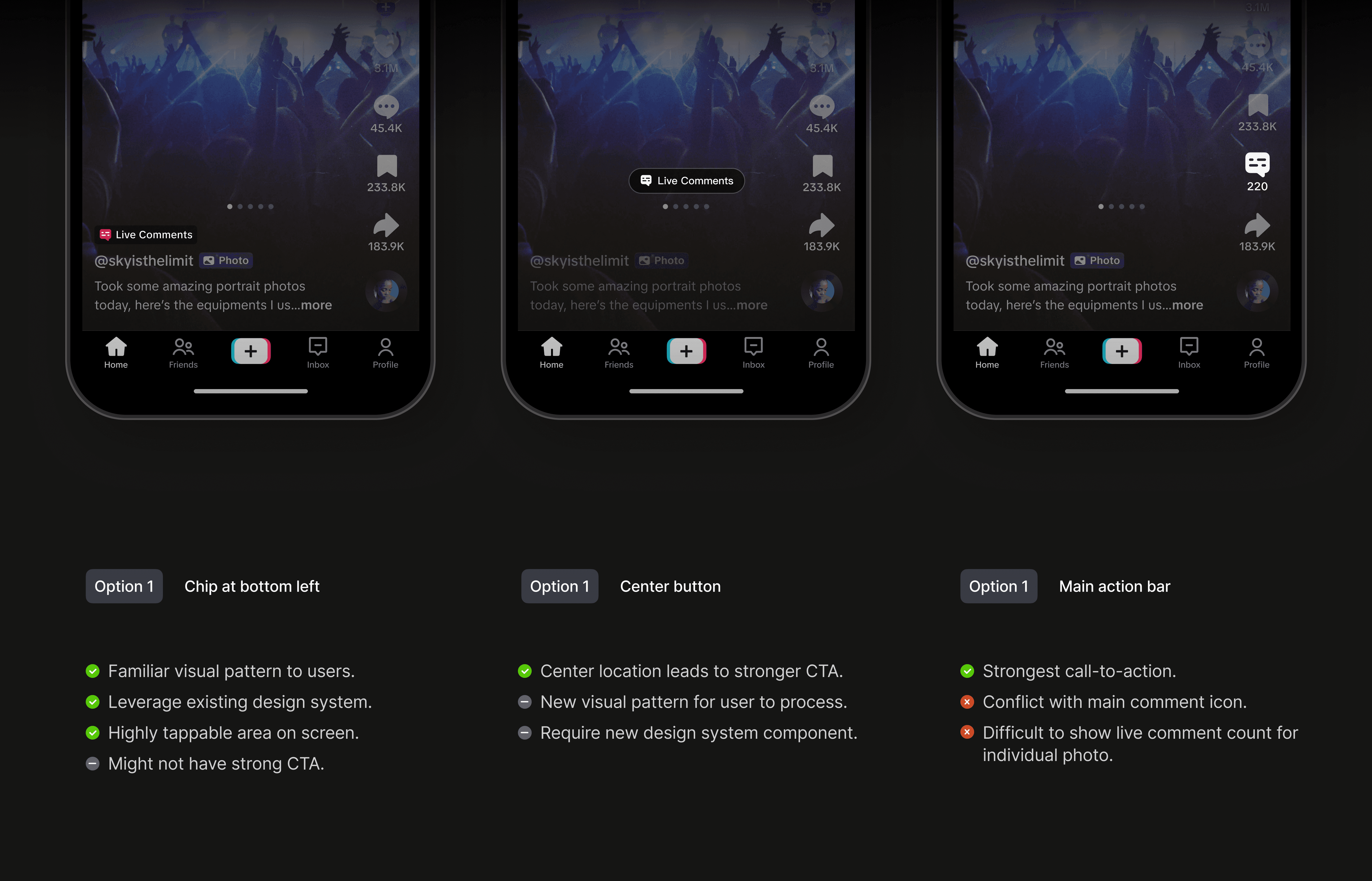 Turning ambiguous problem space to tangible & shippable design: "Live Comments for TikTok Photo", growing user engagements and building communities.